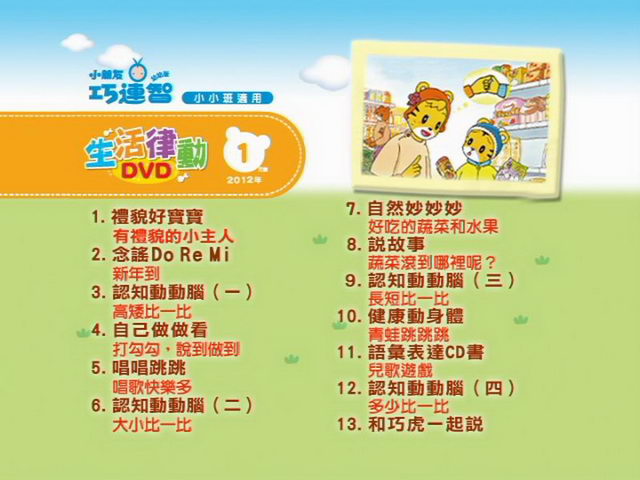 巧連智幼幼版(小小班適用)2012年01月 互動式教學 國語發音繁體中文字幕版(DVD一片裝)